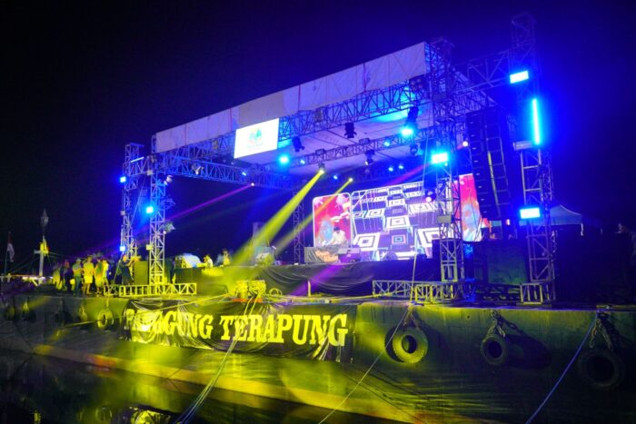 Acara tersebut digelar di panggung terapung di atas kapal tongkang. Lokasinya berada di kawasan Pelabuhan Perikanan Pantai Mayangan.