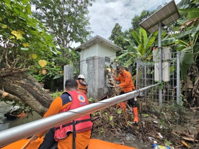BPBD Jatim segera melakukan asesmen dan penanganan awal. Material kayu dan pohon dibersihkan dari sekitar lokasi EWS.