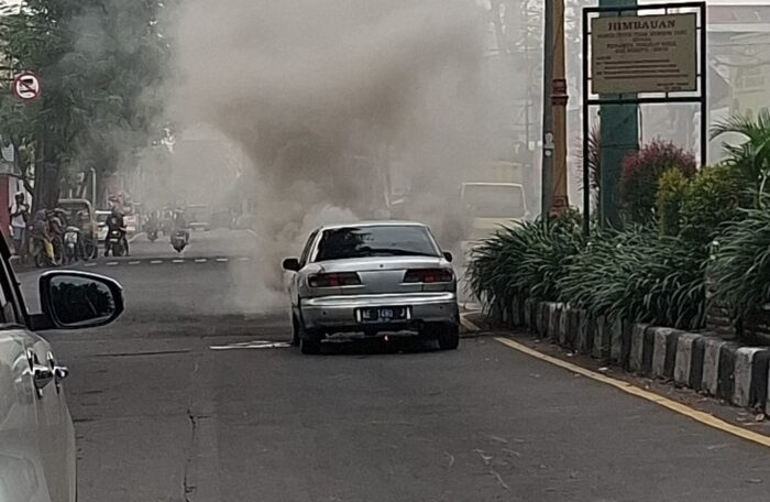 PROBOLINGGO,- Sebuah mobil berwarna silver mendadak mengeluarkan asap tebal saat berhenti di lampu merah perempatan Randu Pangger, Kota Probolinggo, Minggu (22/2/2026) sekitar pukul 15.30 WIB.