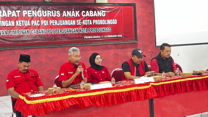 PROBOLINGGO,- Pengurus Anak Cabang (PAC) PDI Perjuangan se-Kota Probolinggo menggelar rapat dan musyawarah bersama di Kantor DPC PDI Perjuangan Kota Probolinggo, di Jalan Brantas Nomor 11, Kecamatan Mayangan, Sabtu malam (7/2/2026).