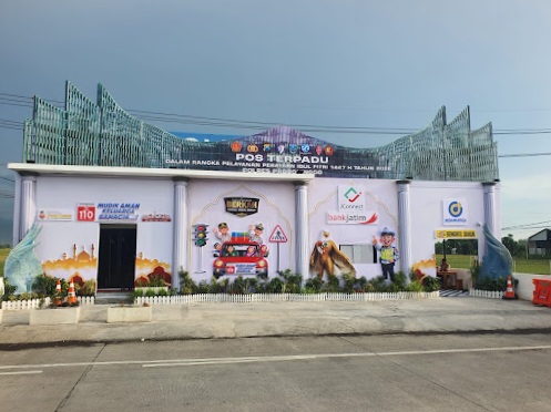 PROBOLINGGO,- Pos Terpadu di Exit Tol Kraksaan, Kabupaten Probolinggo, menjadi perhatian pemudik. Fasilitas ini dibangun oleh Polres Probolinggo dengan desain menyerupai miniatur Ibu Kota Nusantara (IKN).