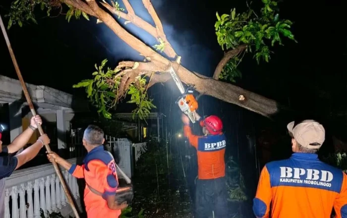 Pohon tumbang juga dilaporkan di wilayah Banyuanyar, Besuk, dan Desa Burumbungan Lor. Petugas bersama warga melakukan pembersihan dan pendataan.