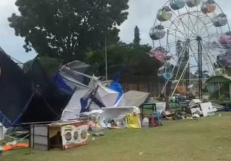 Beberapa tenda yang digunakan untuk stan UMKM maupun stan pendukung acara roboh berantakan. Beruntung, tidak ada korban dalam kejadian tersebut.