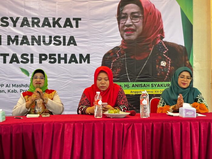 PROBOLINGGO,- Anggota DPR RI Komisi VIII, Dra. Hj. Anisah Syakur, M. Ag, menggelar kegiatan sosialisasi bertajuk “Mewujudkan Masyarakat Sadar Hak Asasi Manusia Melalui Implementasi P5HAM” di Aula PP Al Mashduqiah, Kecamatan Kraksaan, Kabupaten Probolinggo, Senin (29/9/2025).